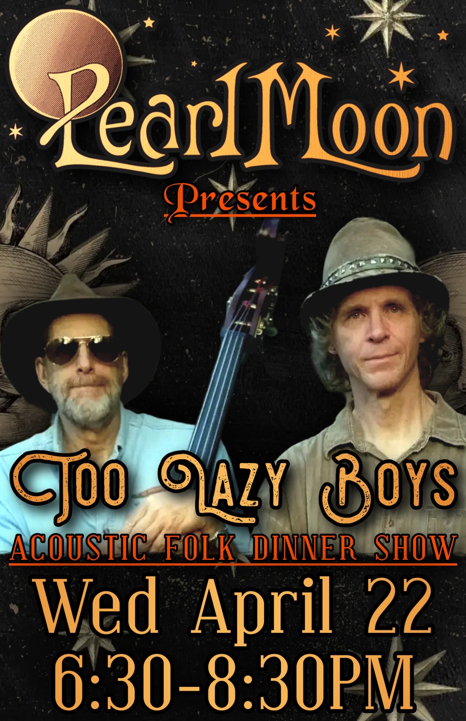 Pearl Moon Restaurant presents "Music Events": Two Lazy Boys - Acoustic Folk Dinner Show! | World Fusion Dinner Show w/ Novus Cantus | Dinner Show w/ Murali Coryell |