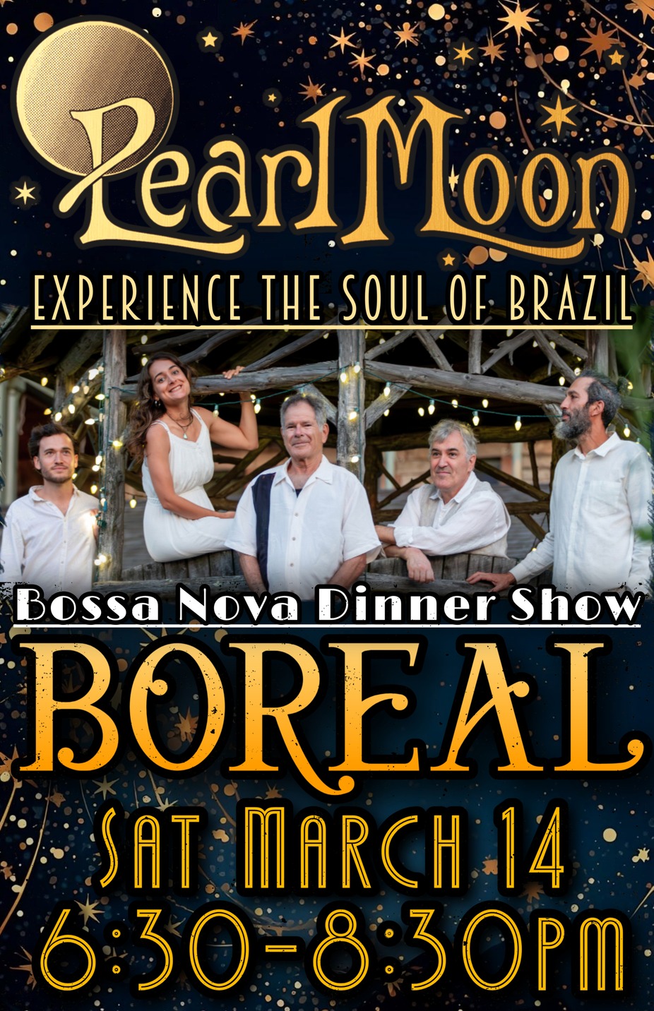 Pearl Moon Restaurant presents "Music Events": Folk Dinner Show with The New Zeitgeist | World Fusion Dinner Show with Novus Cantus | Funky Jazz Brunch with Tree of Life | Folk Dinner Show with Perry Foster | Bossa Nova Dinner Show with Boreal |